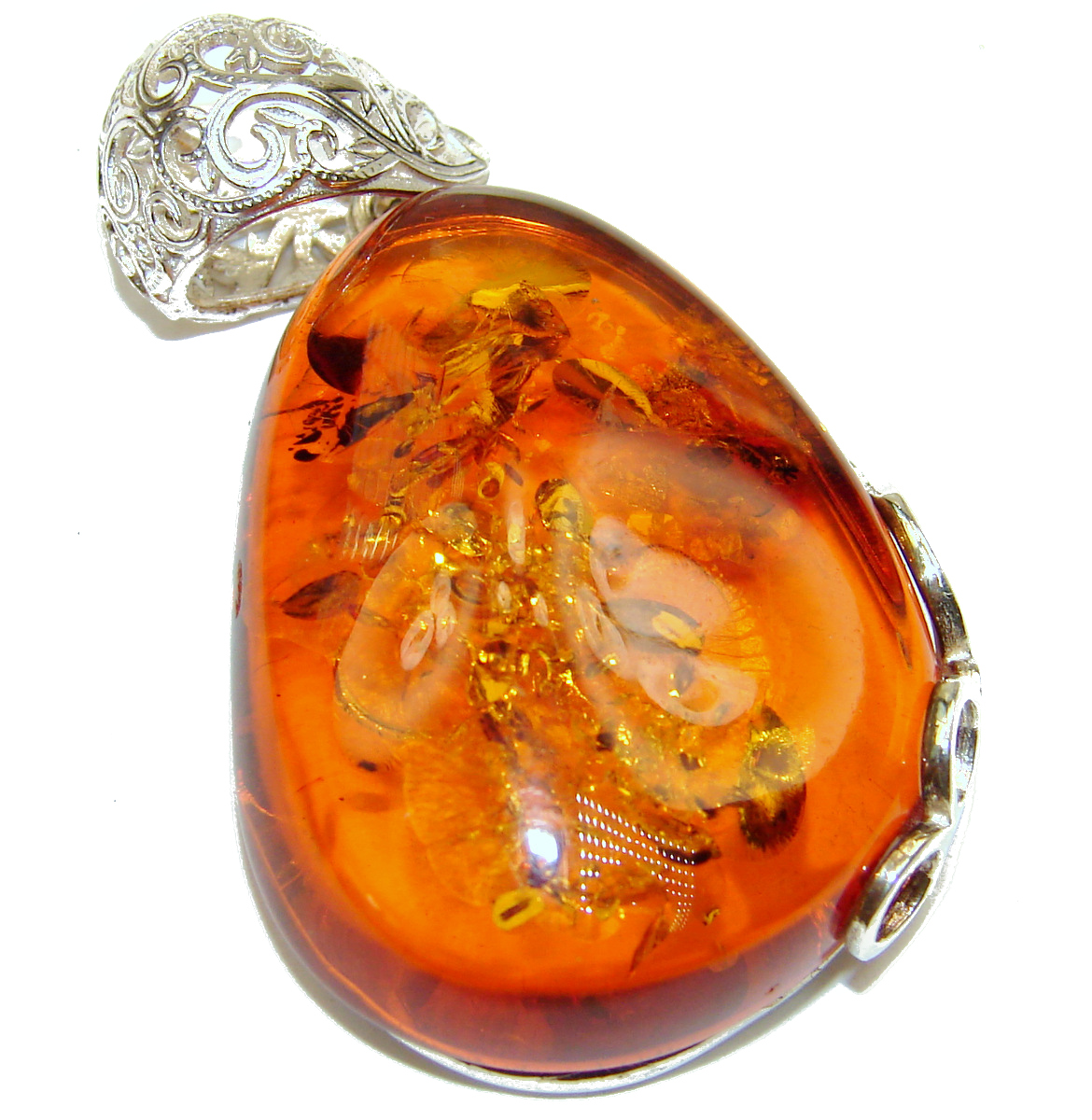 Incredible Beauty Natural Baltic Amber .925 Sterling Silver handmade Pendant