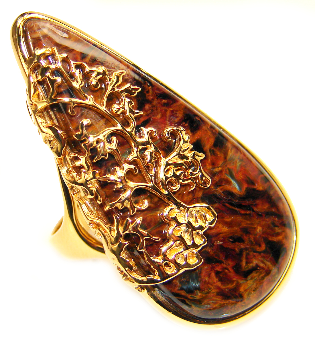 Huge Silky Black Pietersite 14K Gold over .925 Sterling Silver handmade Ring size 9