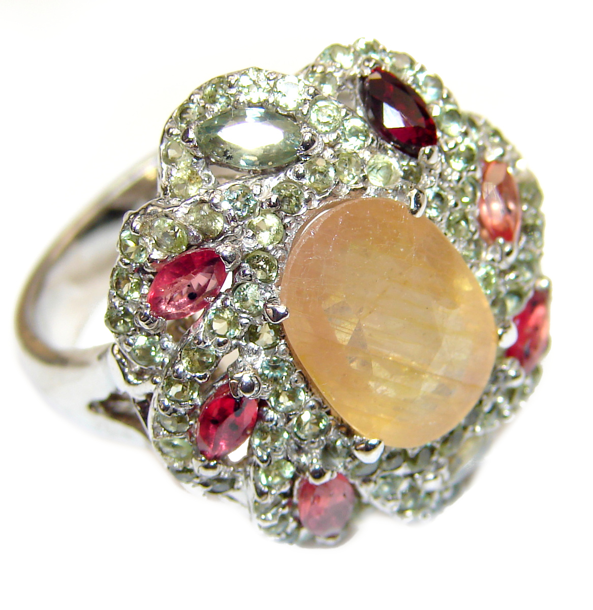 Golden Rutilated Quartz multicolor Sapphire .925 Sterling Silver handcrafted Ring Size 9 3/4