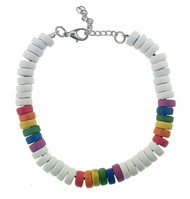 White & Rainbow Pride Bead Puka Shell Hand OR Ankle Bracelet - Gay & Lesbian LGBT Pride