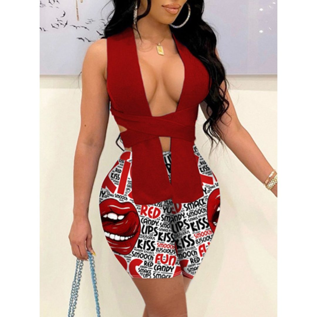 LW Lip Letter Print Shorts Set