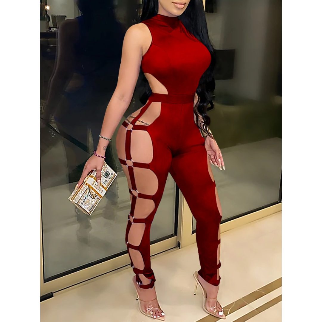 LW SXY Cut Out Metal Ring Decor Skinny Jumpsuit