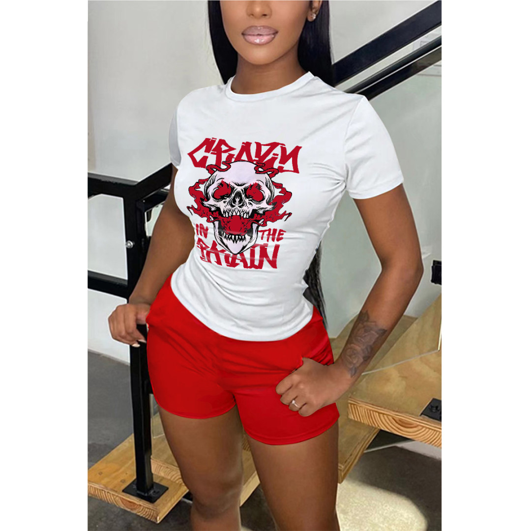 LW Skull Head Letter Print Shorts Set