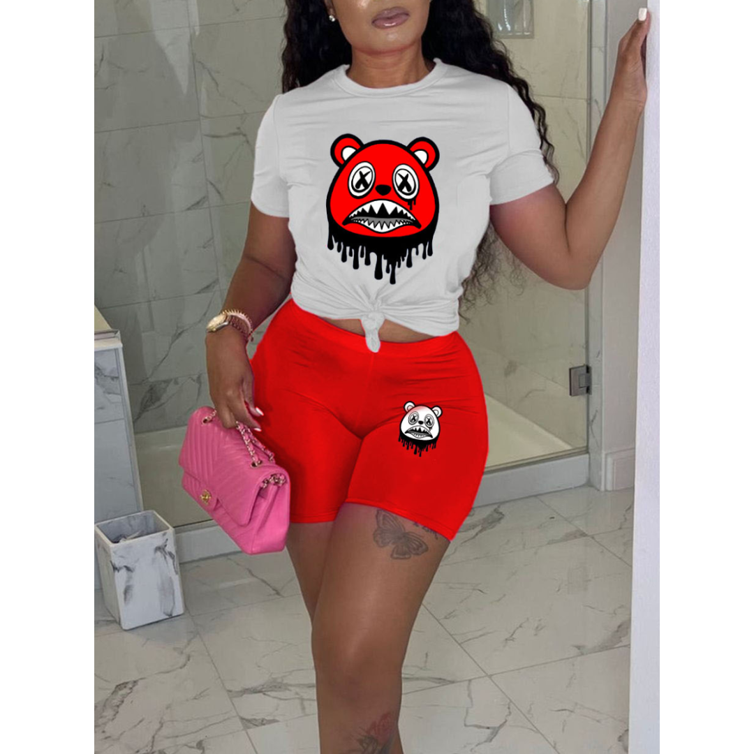 LW Cartoon Print Regular Fit Stretchy Shorts Set