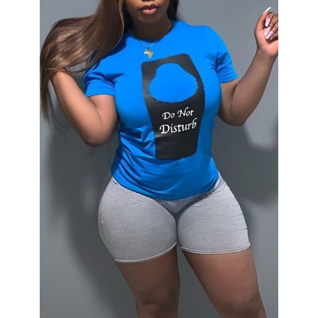 LW Sportswear Print Blue Two-piece Shorts Set