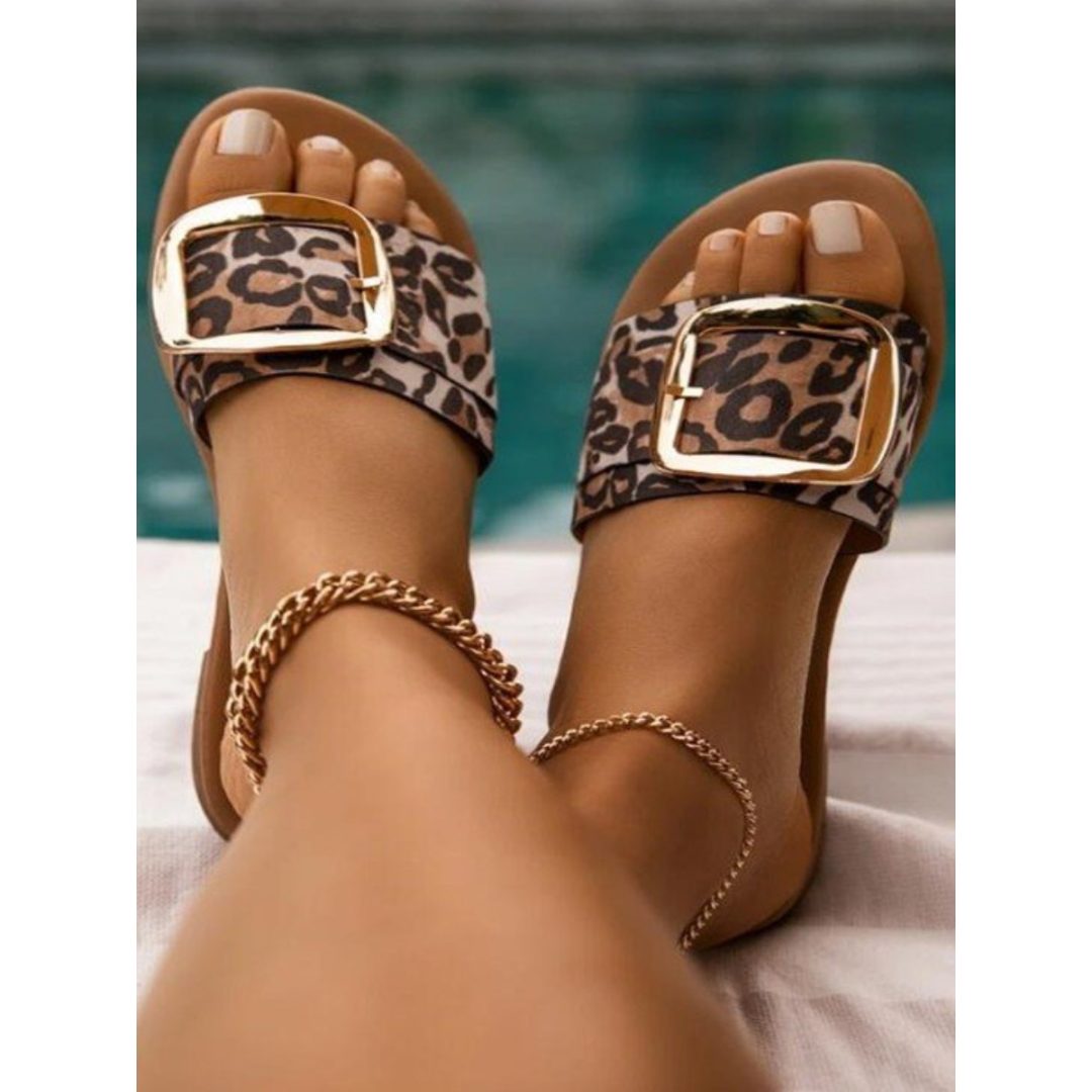 LW Street Leopard Print Buckle Design Slides