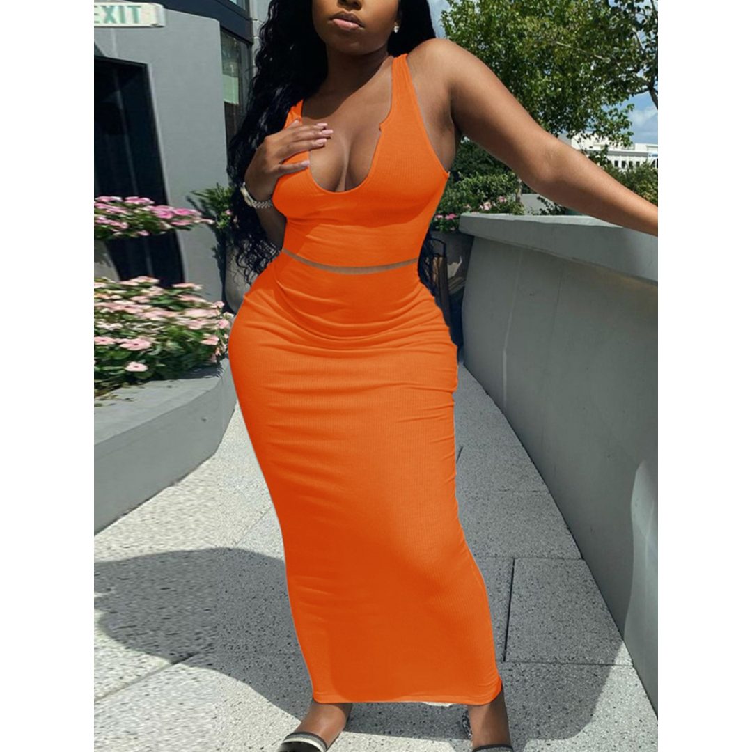 LW BASICS U Neck Bodycon Skirt Set
