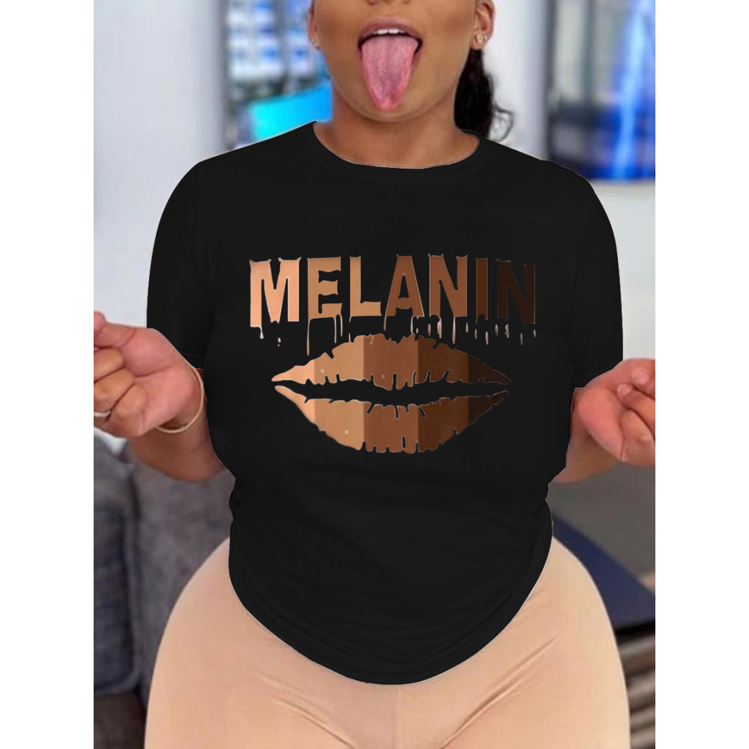 LW Casual Lip Letter Print Black T-shirt