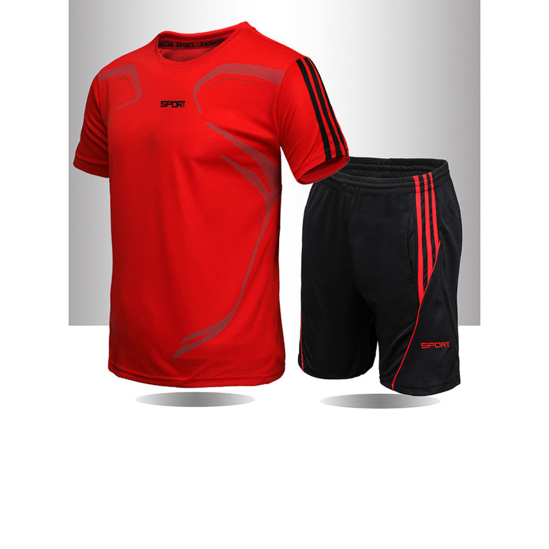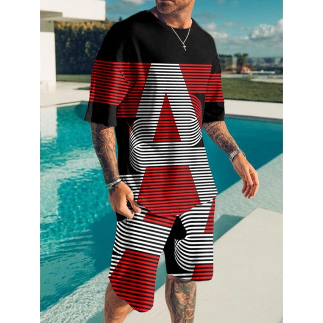 LW Men Letter Print Striped Shorts Set