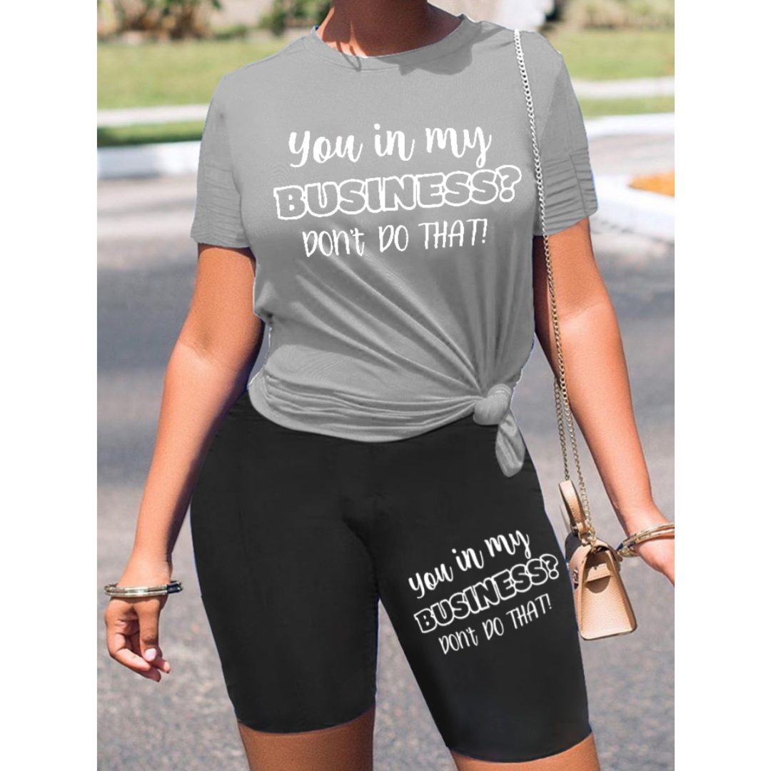 LW Plus Size Round Neck Letter Print Shorts Set