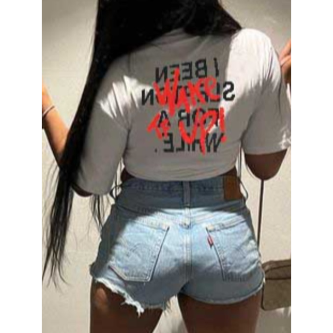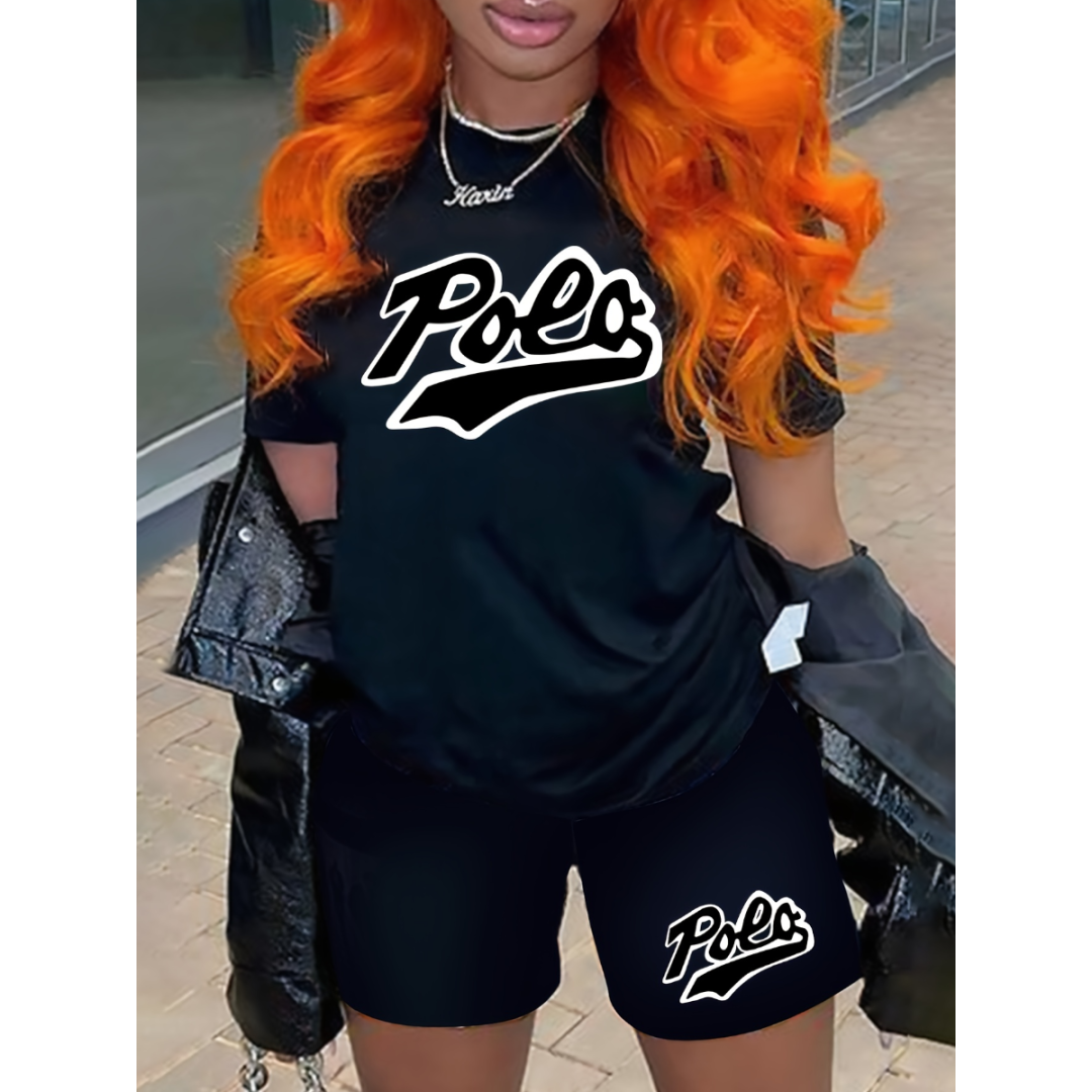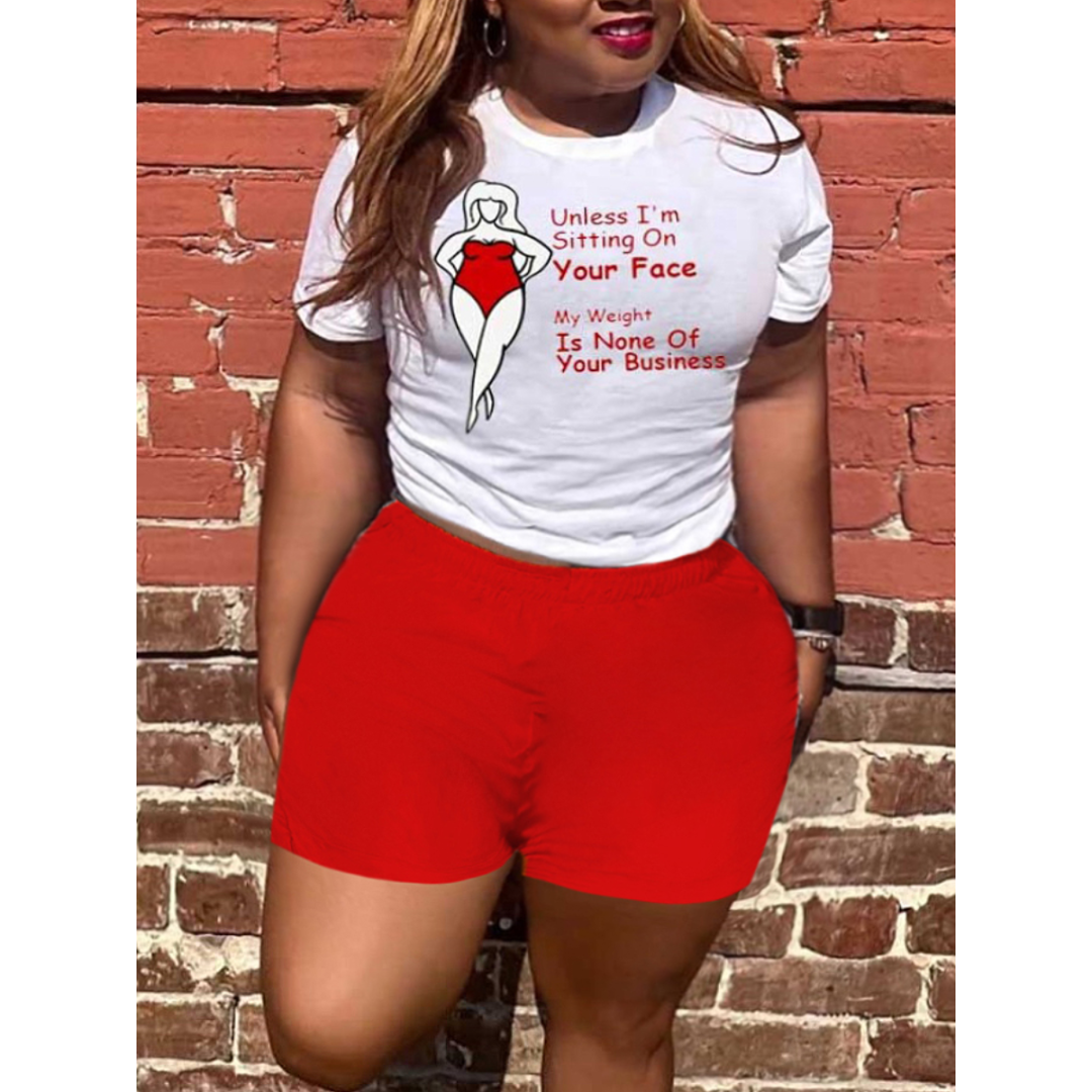 LW Plus Size Letter Print Regular Fit Shorts Set