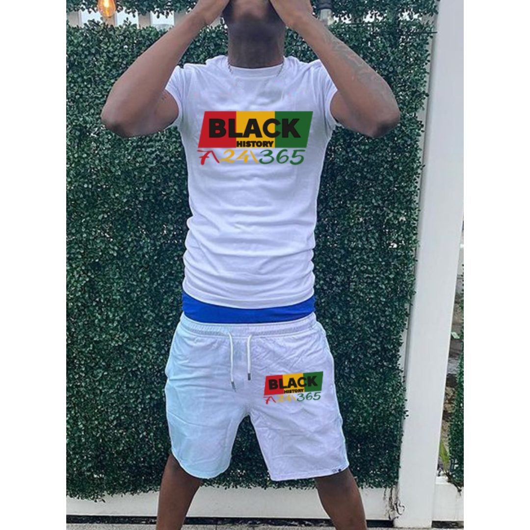 LW Men Floral Blaze Letter Print Drawstring Shorts Set