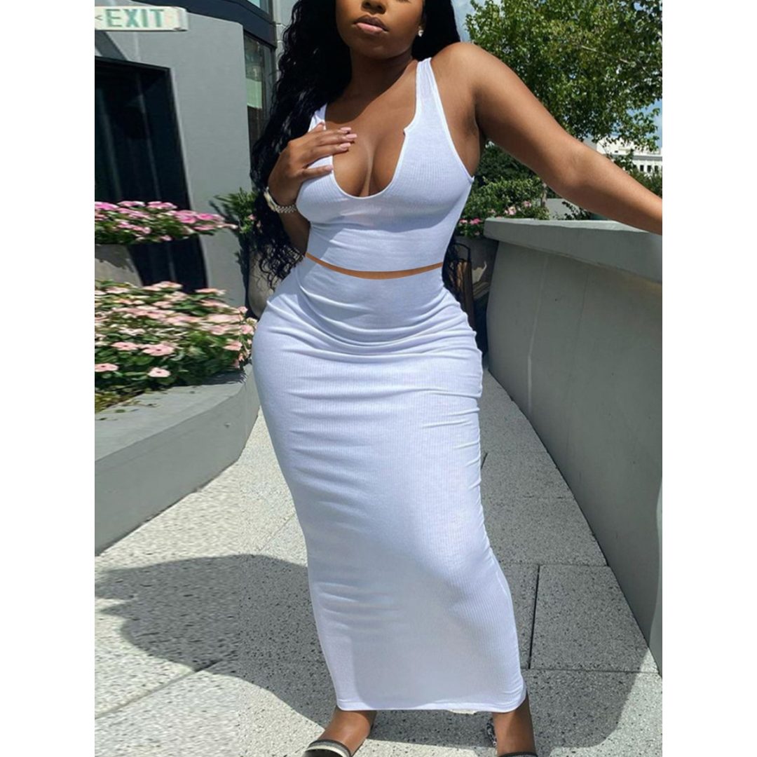 LW BASICS U Neck Bodycon Skirt Set