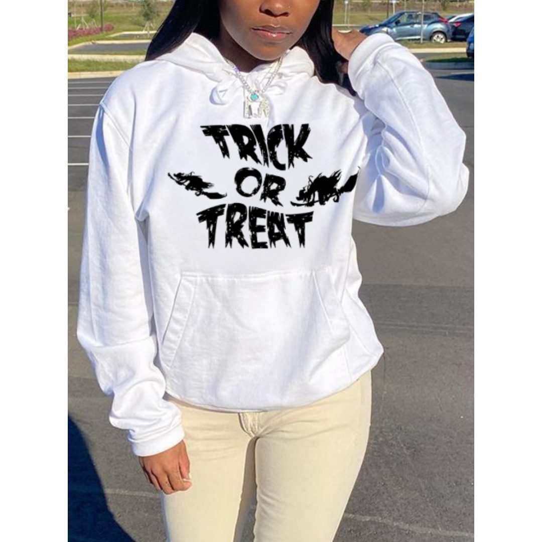 LW BASICS Letter Print Kangaroo Pocket Hoodie