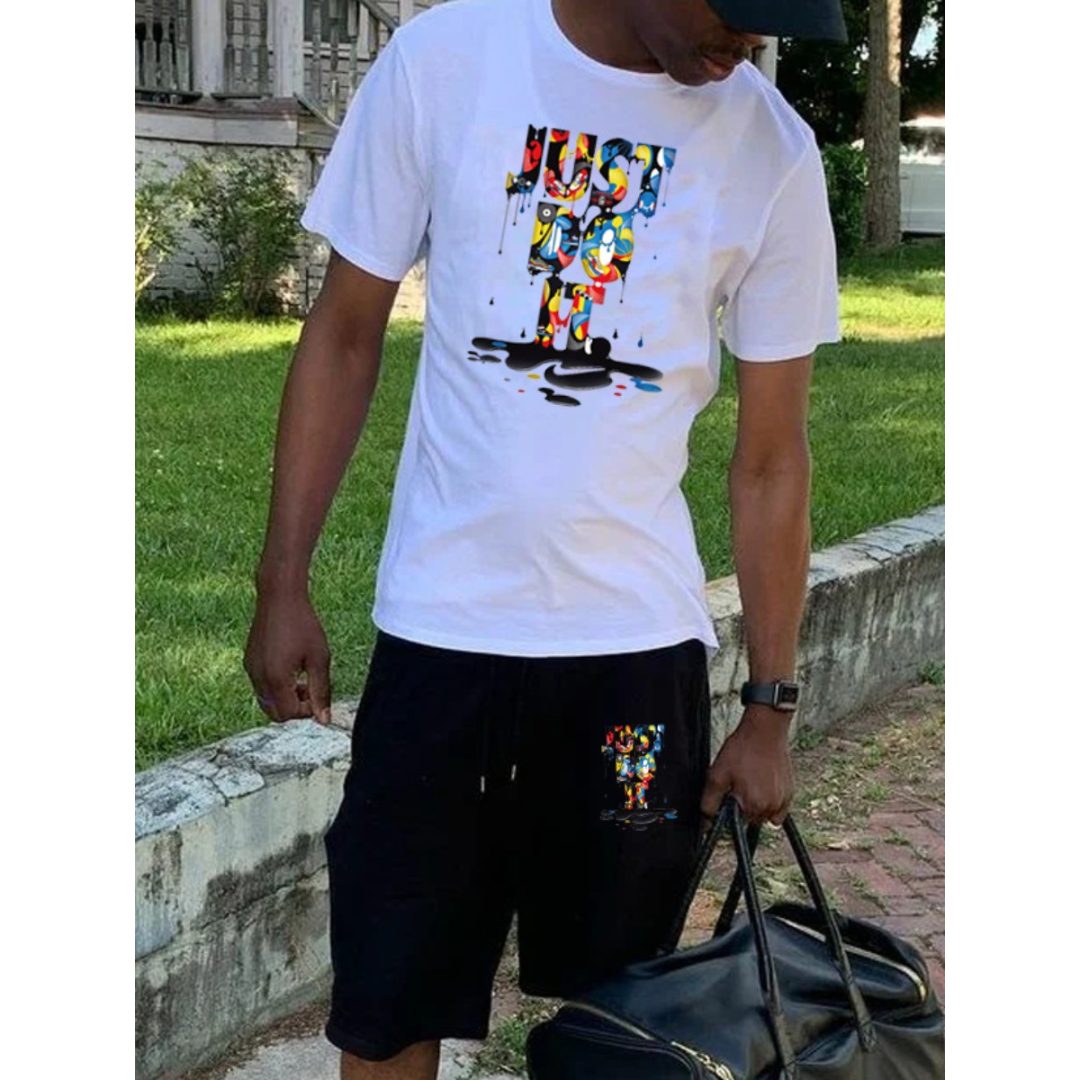 LW Men Just Do It Letter Print Drawstring Shorts Set