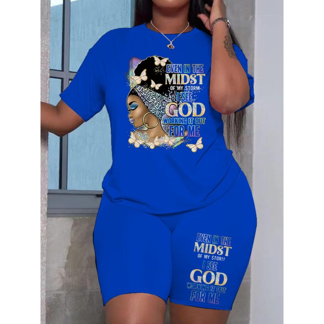 LW Plus Size Round Neck Figure Print Shorts Set
