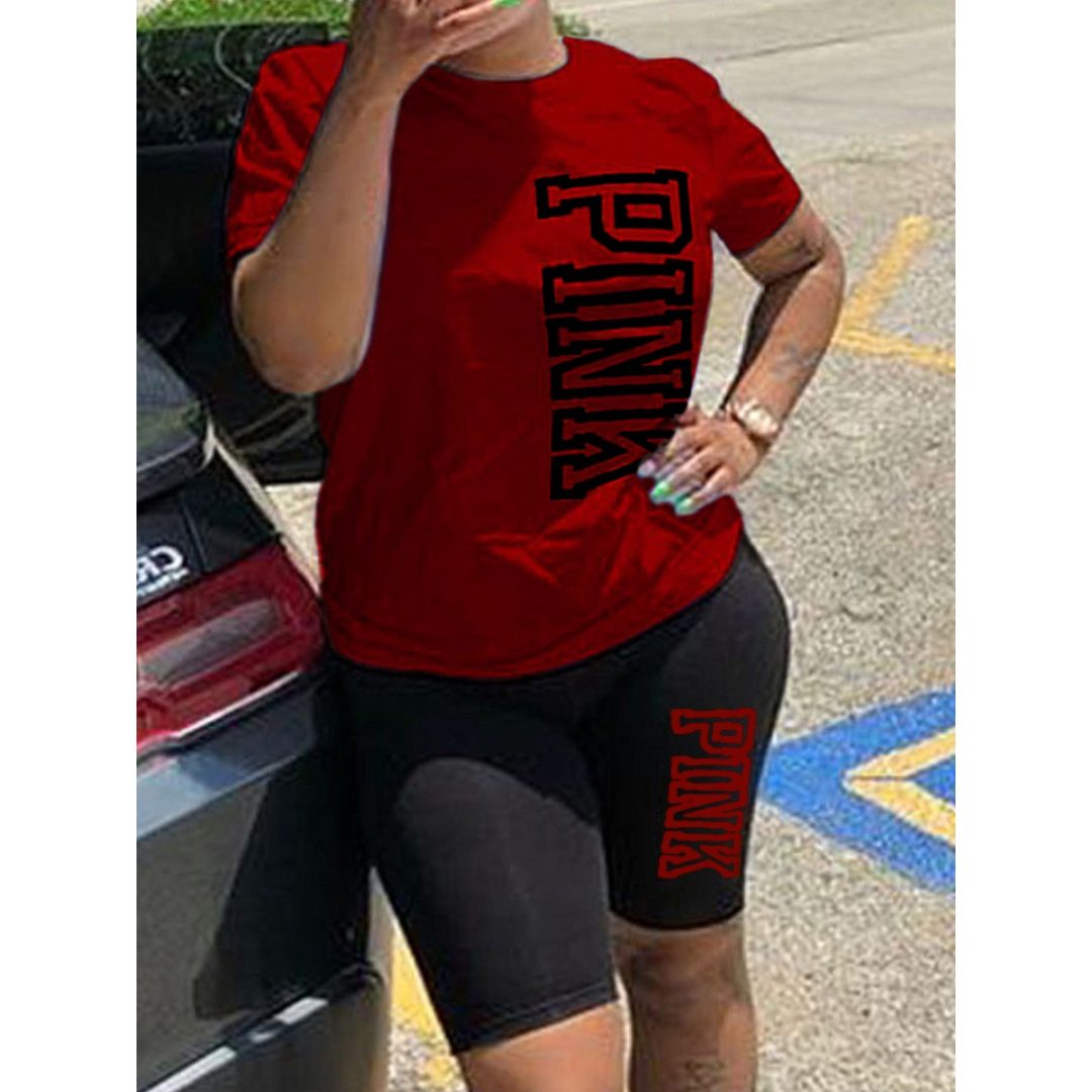 LW Plus Size Pink Letter Print Shorts Set