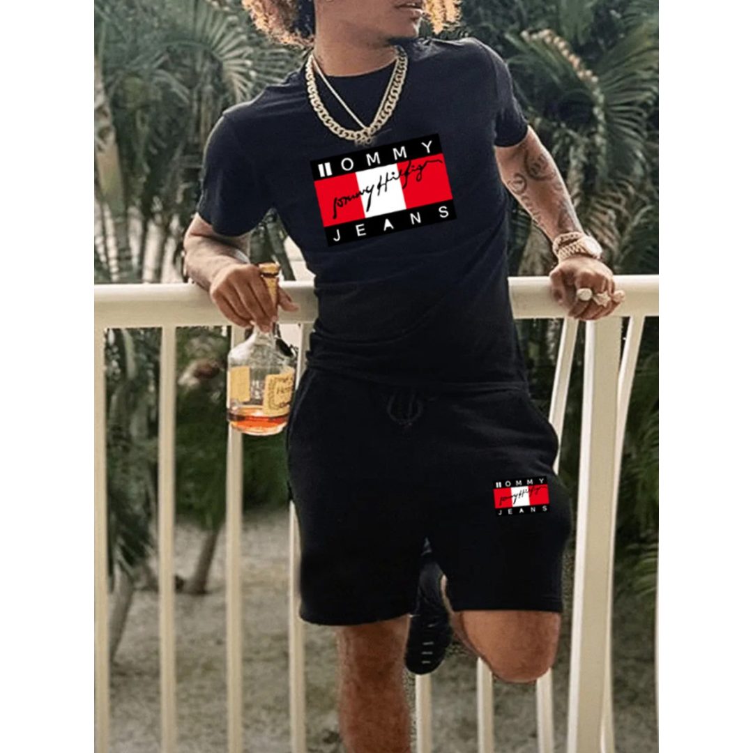 LW Men Time Is Money Letter Print Shorts Set