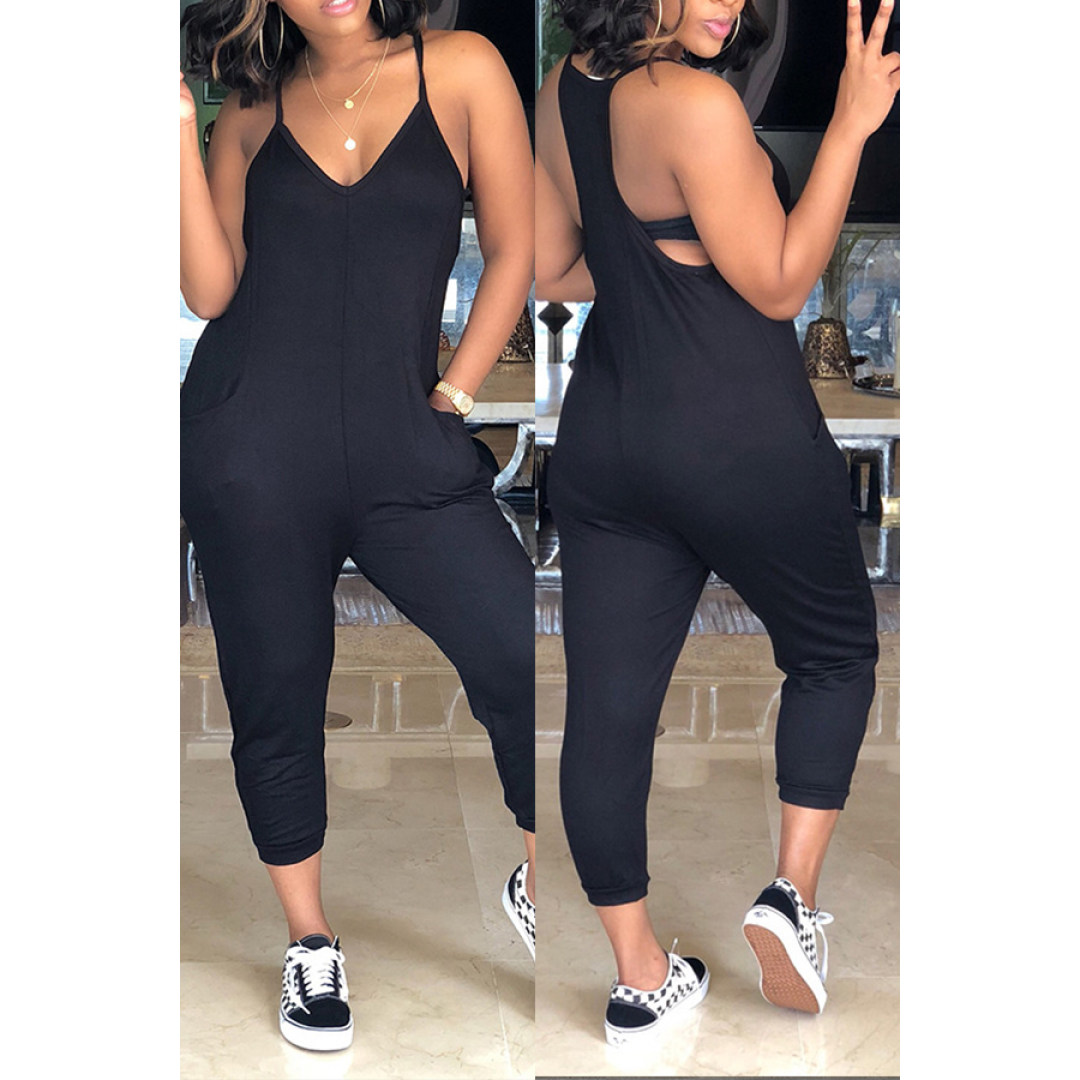 LW BASICS Euramerican Dew Shoulder Pocket Design Blue One-piece Jumpsuit