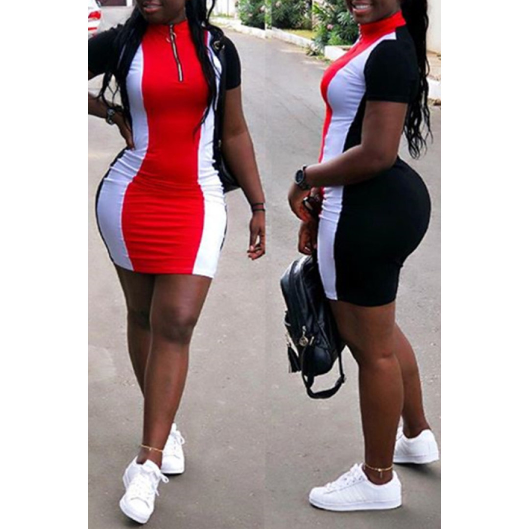 LW Casual Striped Rose Red Two-piece Shorts Set