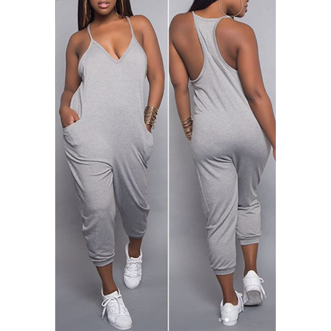 LW Euramerican Dew Shoulder Grey One-piece Jumpsuit