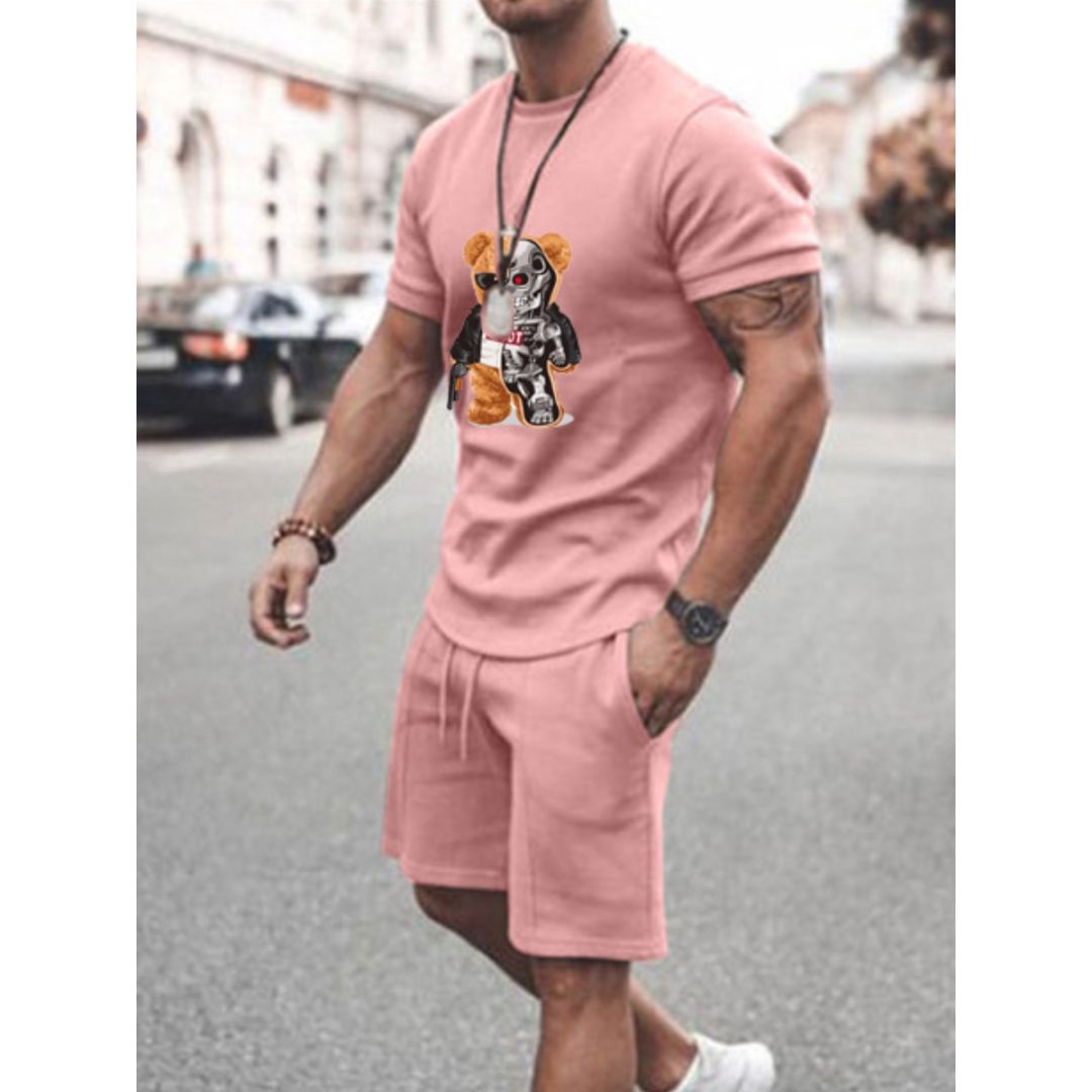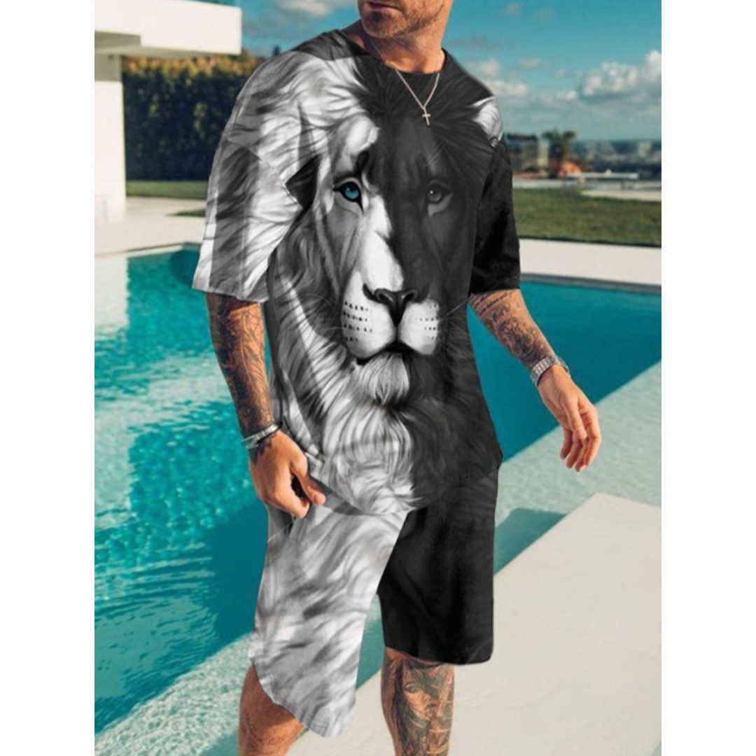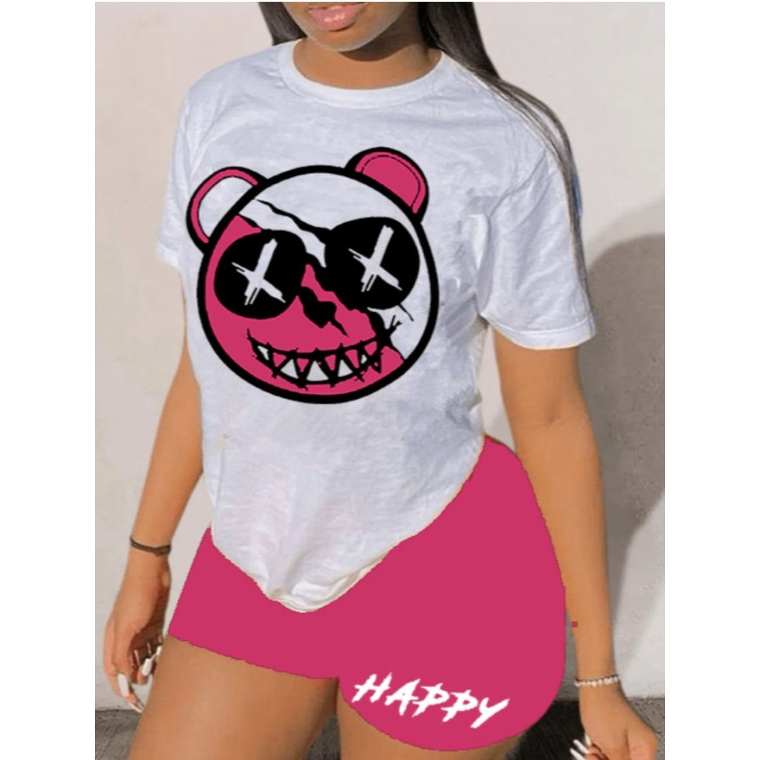 LW Plus Size Round Neck Gradient Print Shorts Set