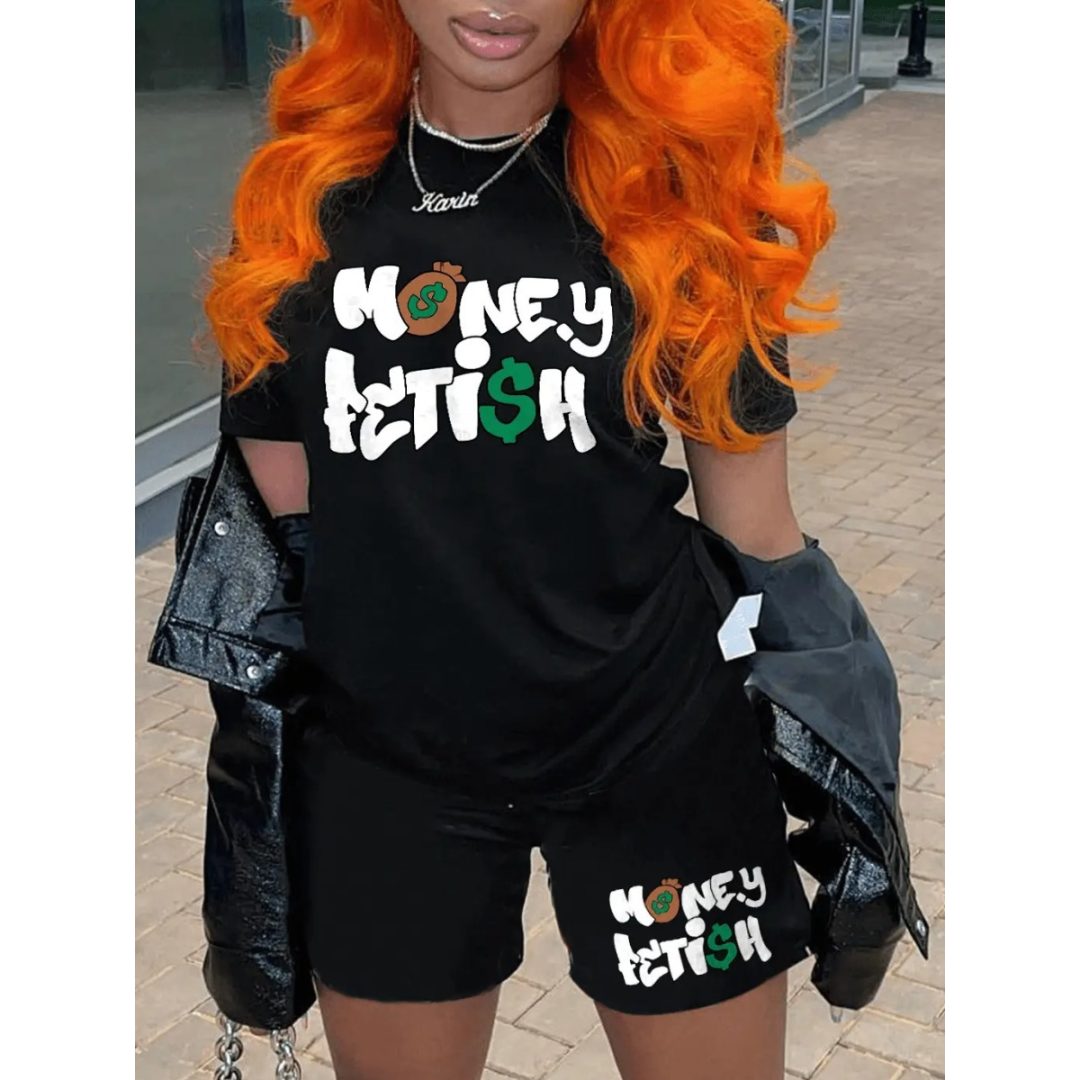 LW Plus Size Splash-ink Letter Print Shorts Set