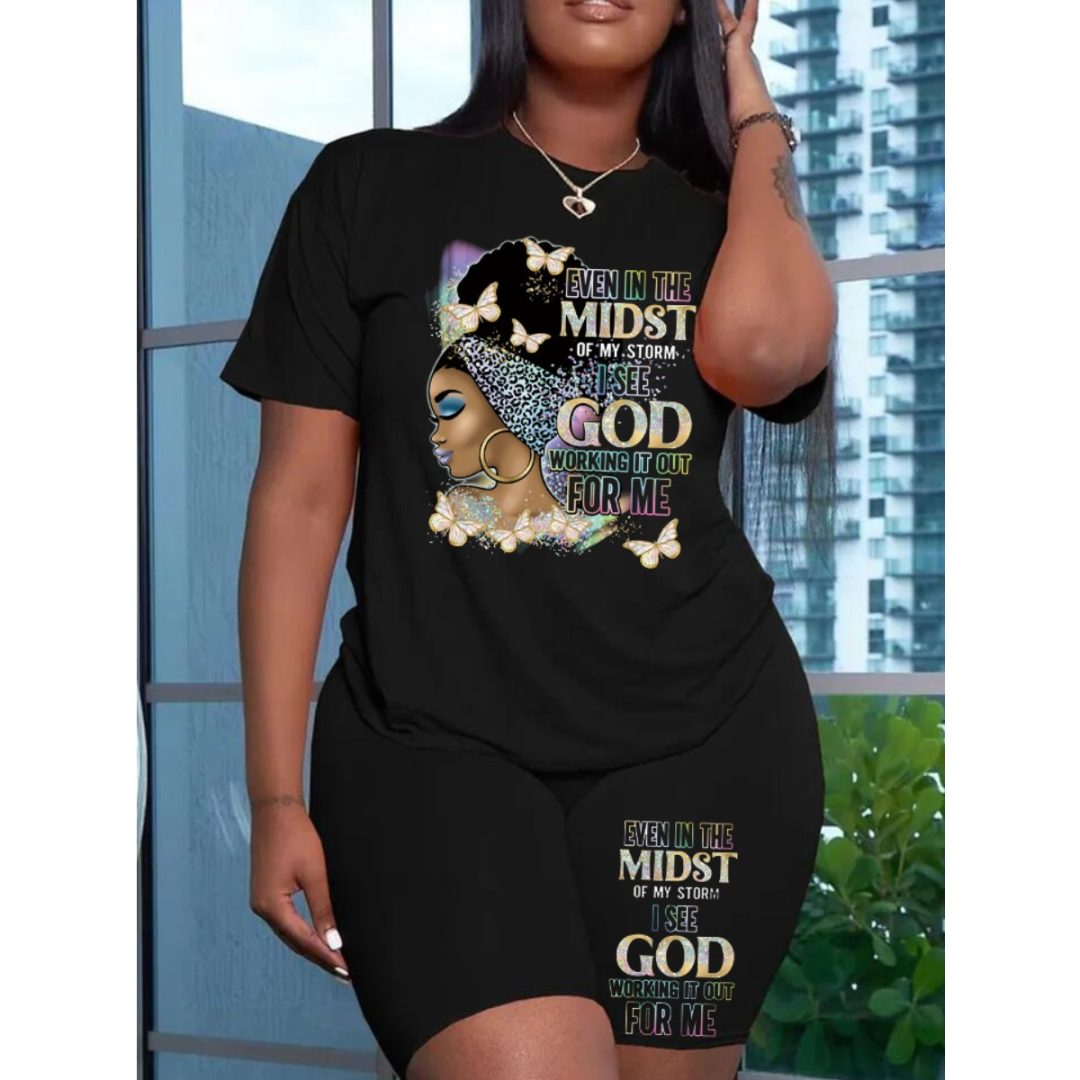 LW Plus Size Houndstooth Tassel Design Shorts Set
