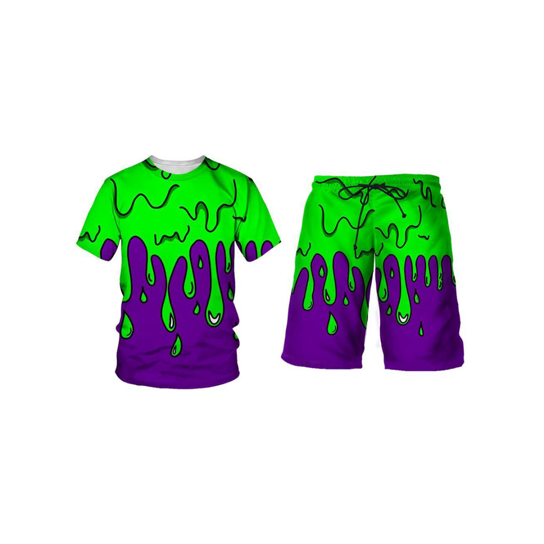 LW Men Mixed Print Drawstring Shorts Set