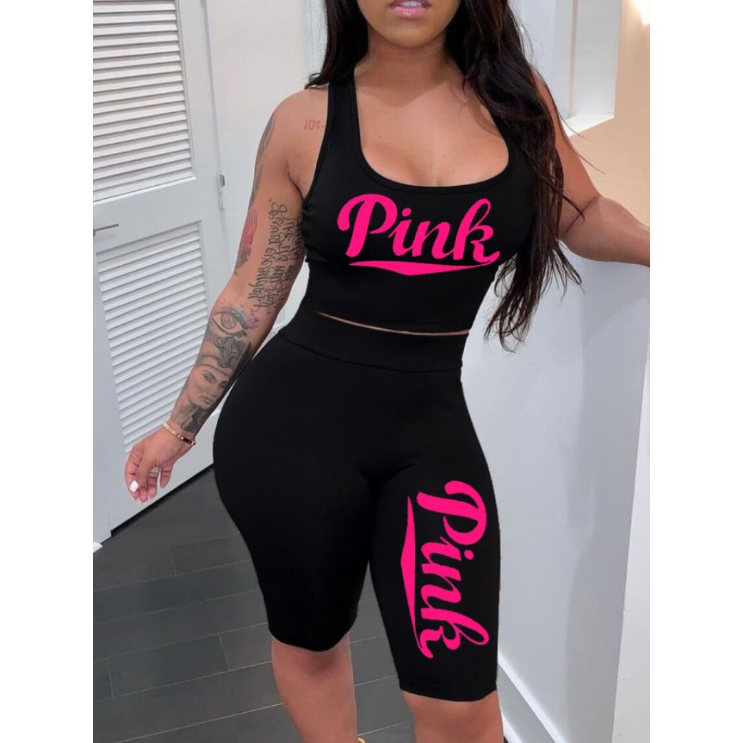 LW Pink Letter Print Shorts Set