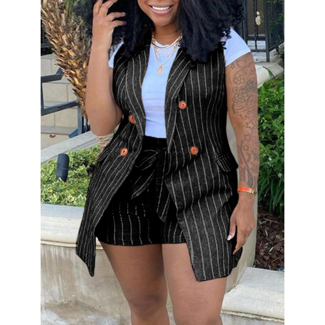 LW Plus Size Striped Bandage Design Blazer Shorts Set