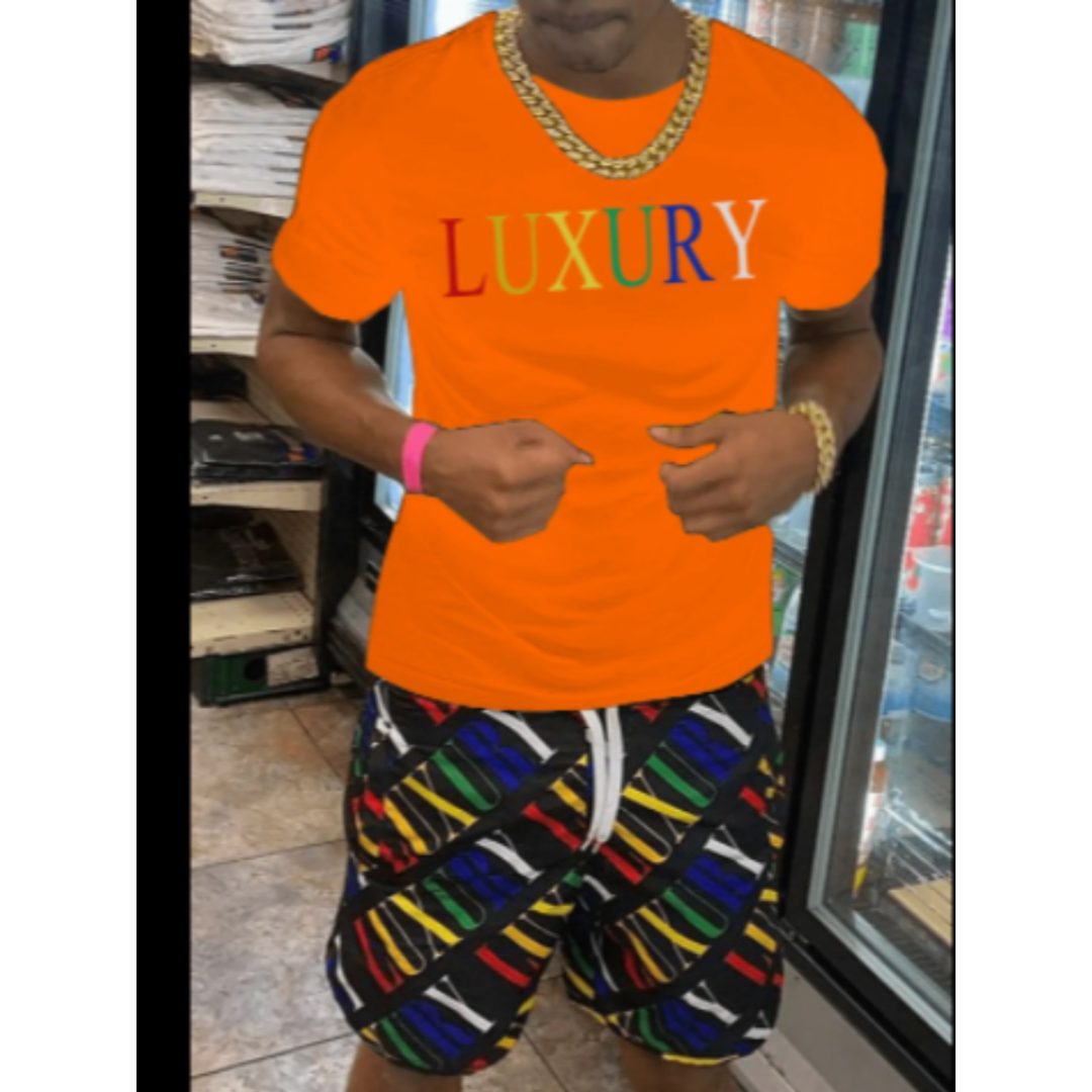 LW Men Cross Figure Print Shorts Set