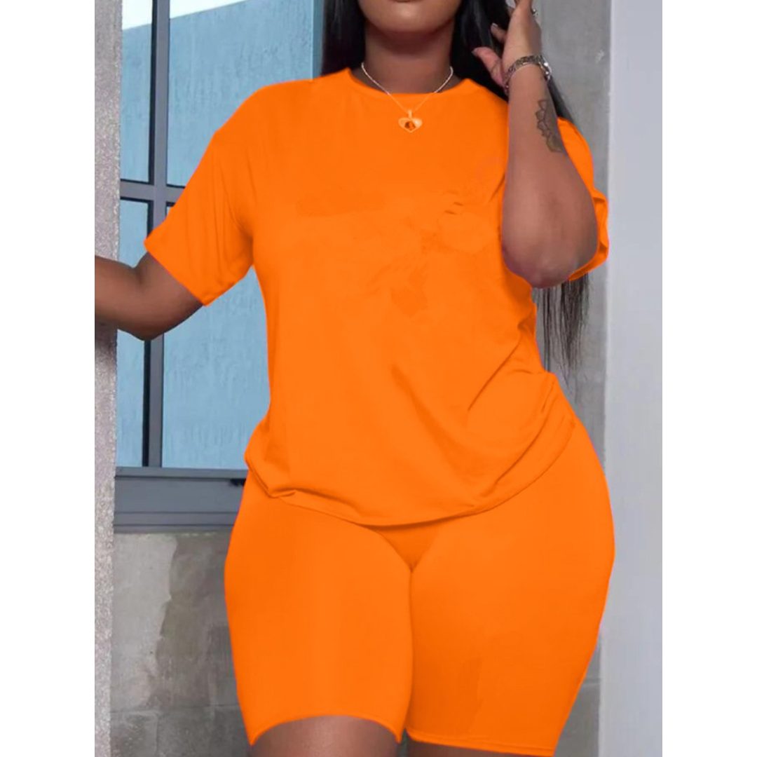 LW BASICS Plus Size Round Neck Regular Fit Shorts Set