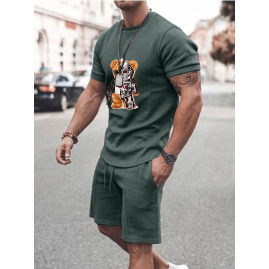 LW Men Round Neck Animal Print Shorts Set