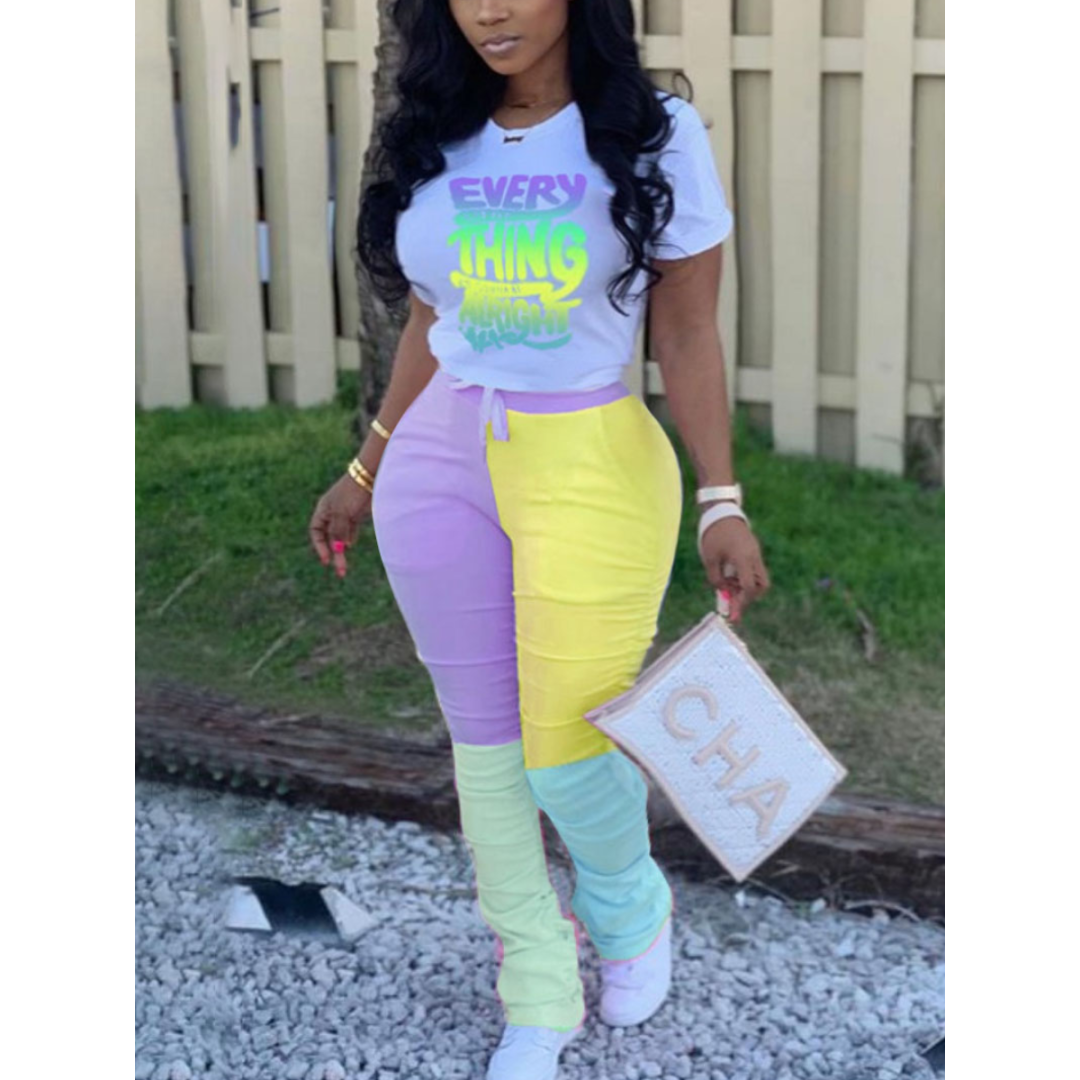LW Plus Size Gradient Letter Print Drawstring Pants Set