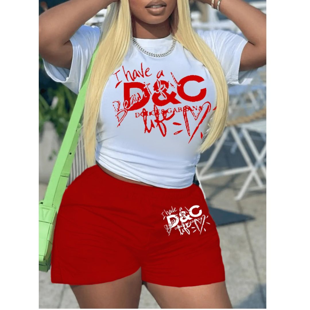 LW Plus Size Geometric Cartoon Decor Shorts Set