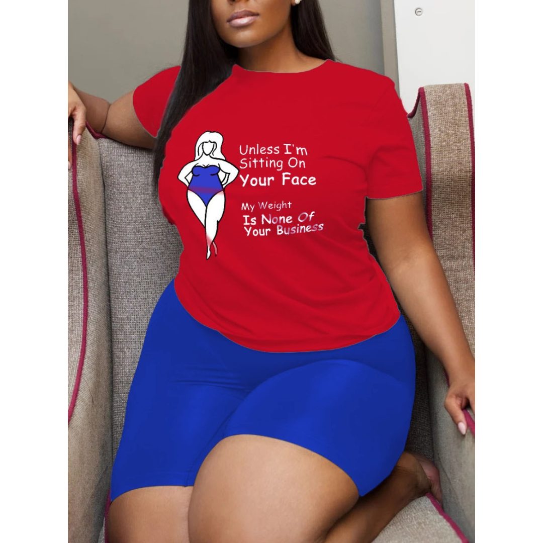 LW Plus Size Nope Not Today Letter Print Shorts Set