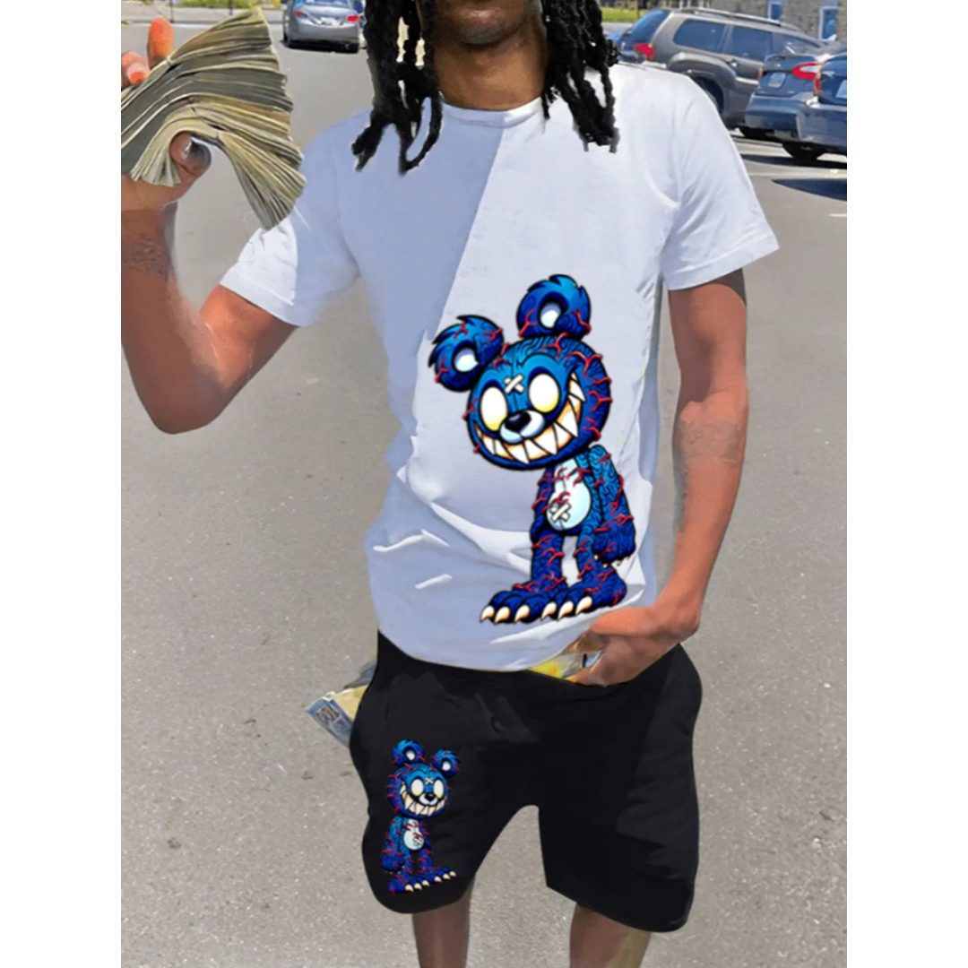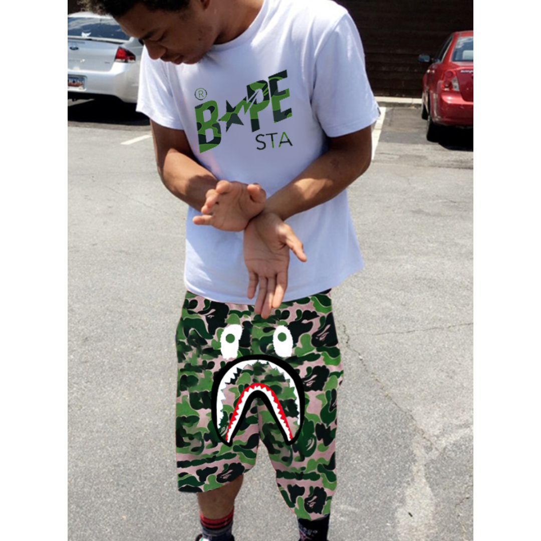 LW Men Fish Mouth Camo Letter Print Shorts Set