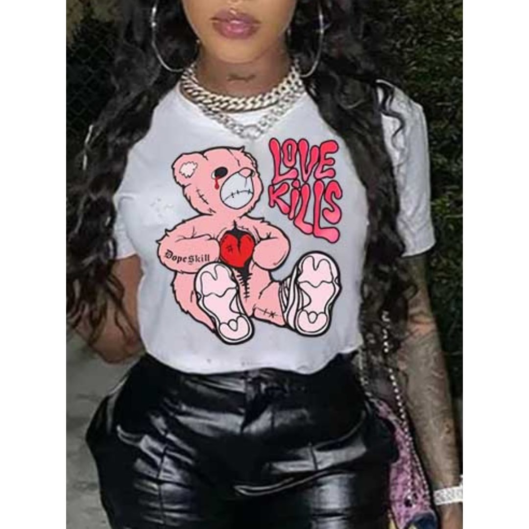 LW Plus Size Geometric Letter Print Skinny Shorts Set