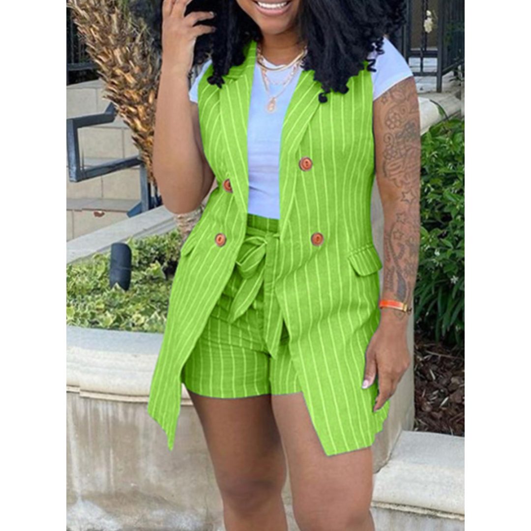 LW Plus Size Bandage Design Striped Shorts Set