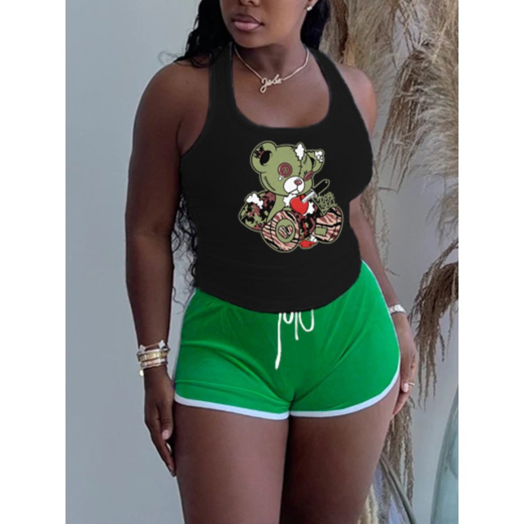 LW Bear Cami Cartoon Print Drawstring Shorts Set