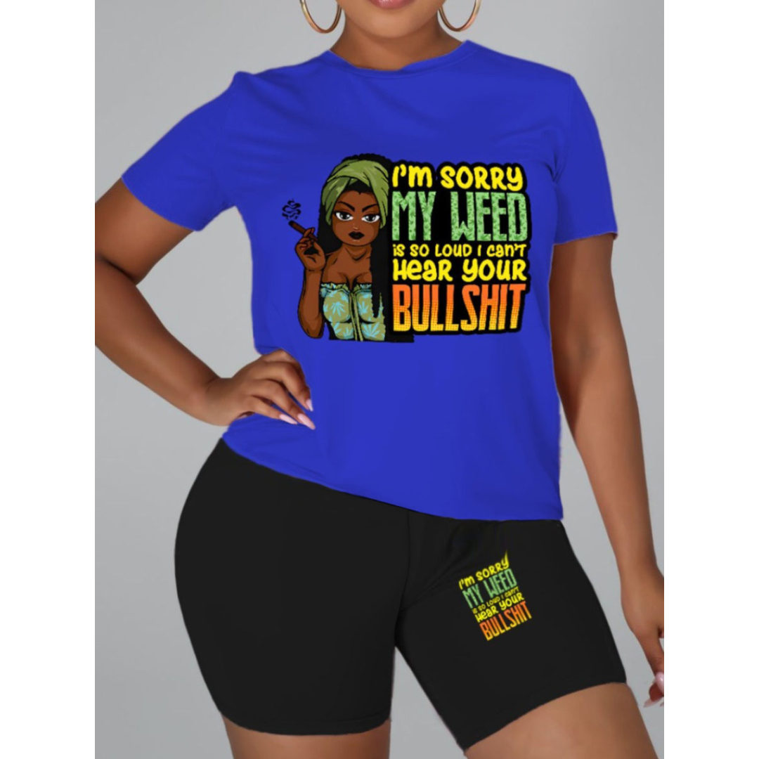 LW Plus Size Barbie Letter Print Skinny Shorts Set