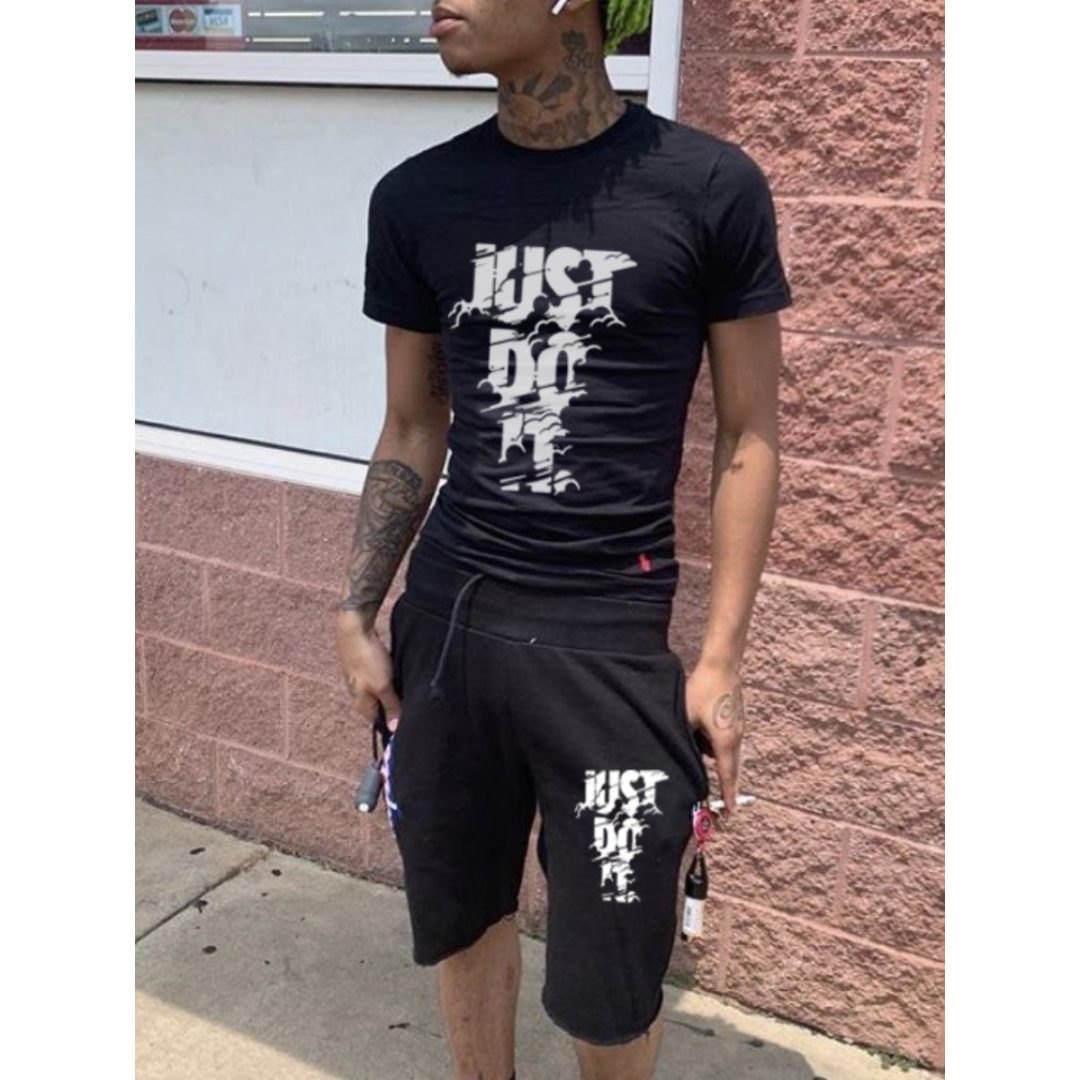 LW Men Just Do It Letter Print Shorts Set