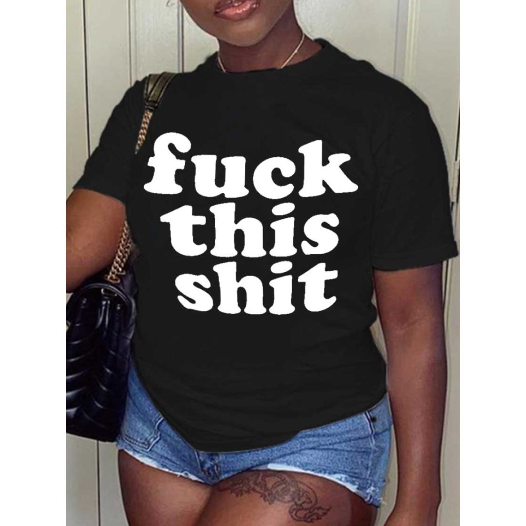 LW Plus Size Round Neck Letter Print T-shirt