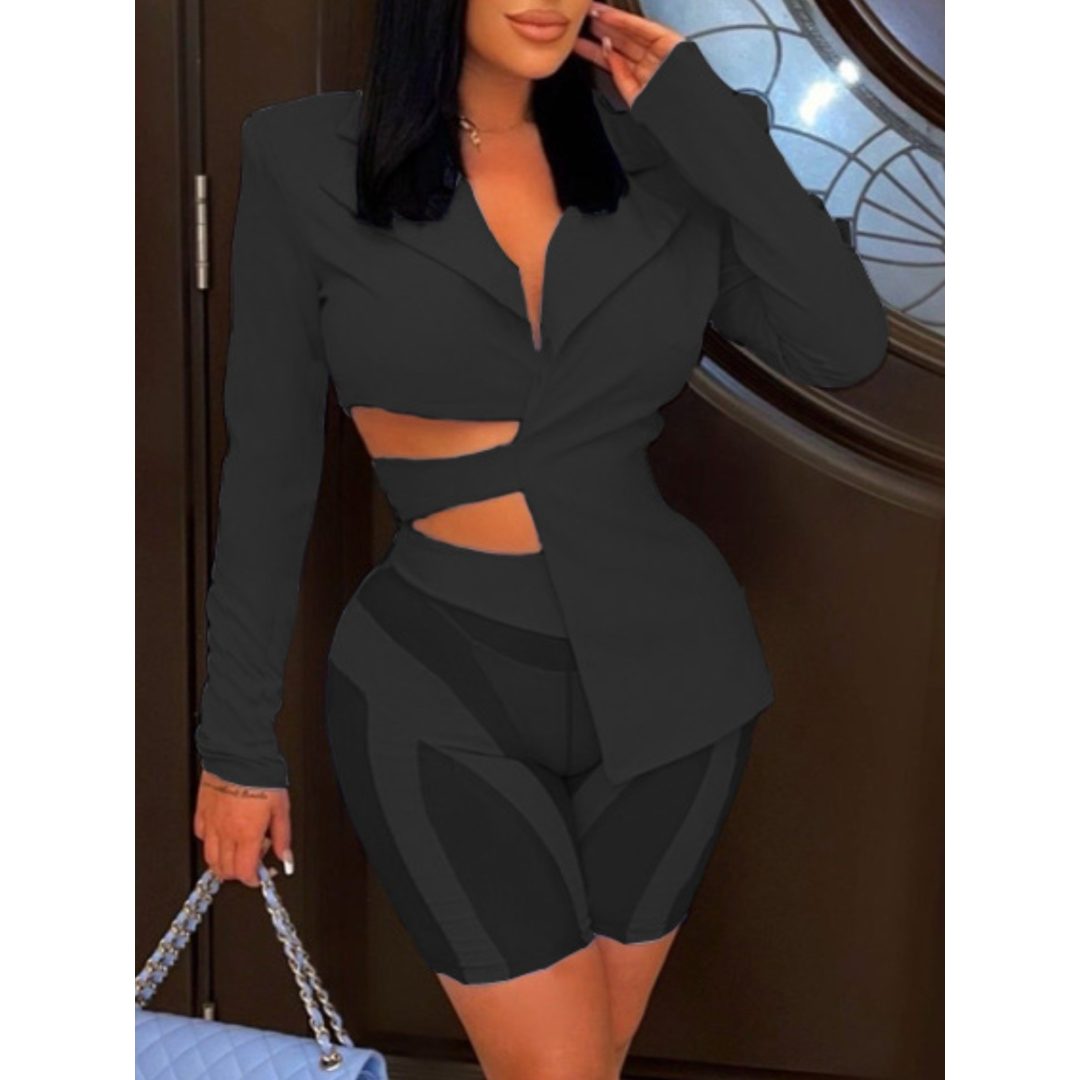 LW SXY Bandage Design Asymmetrical See Through Shorts Set