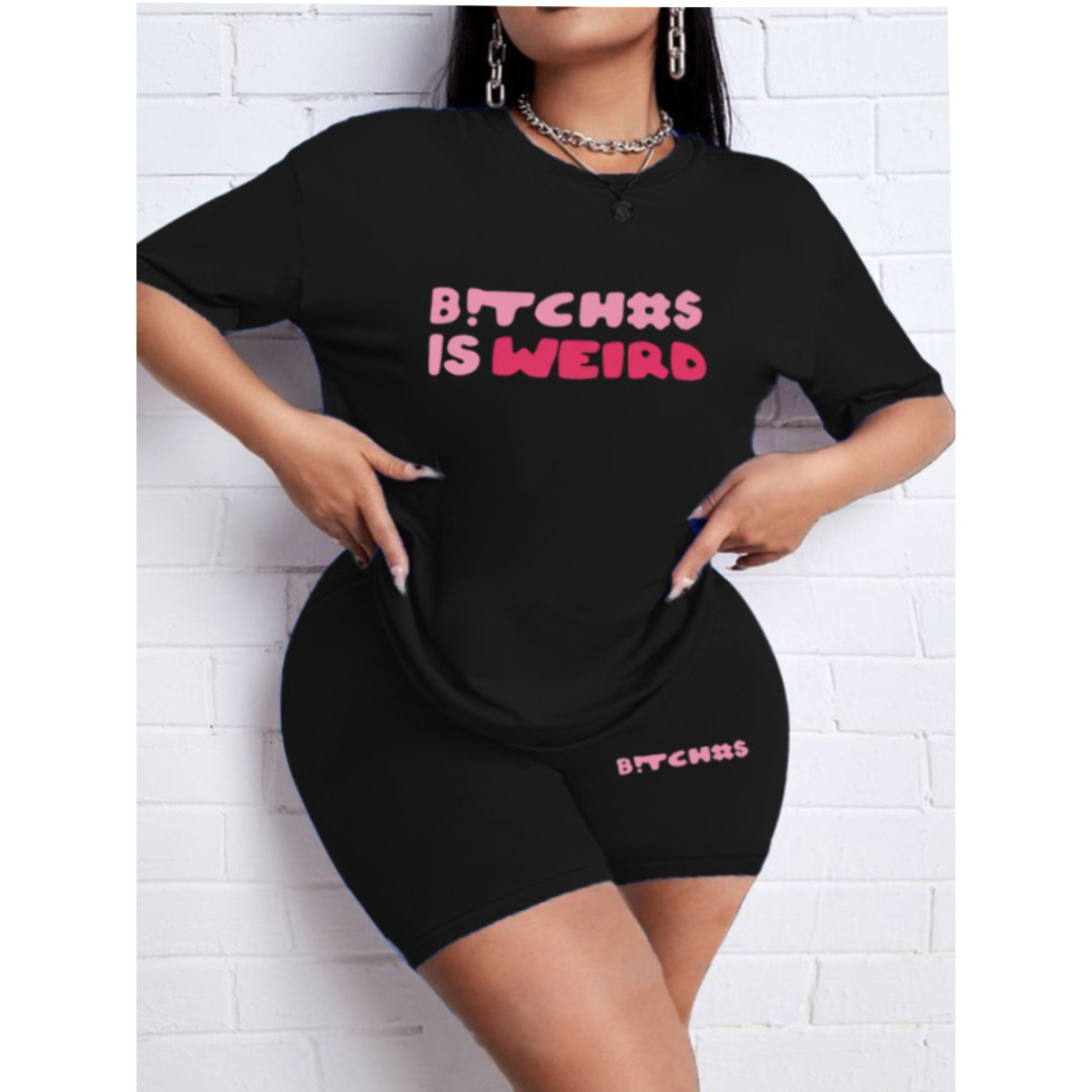 LW Plus Size Letter Print Regular Fit Shorts Set