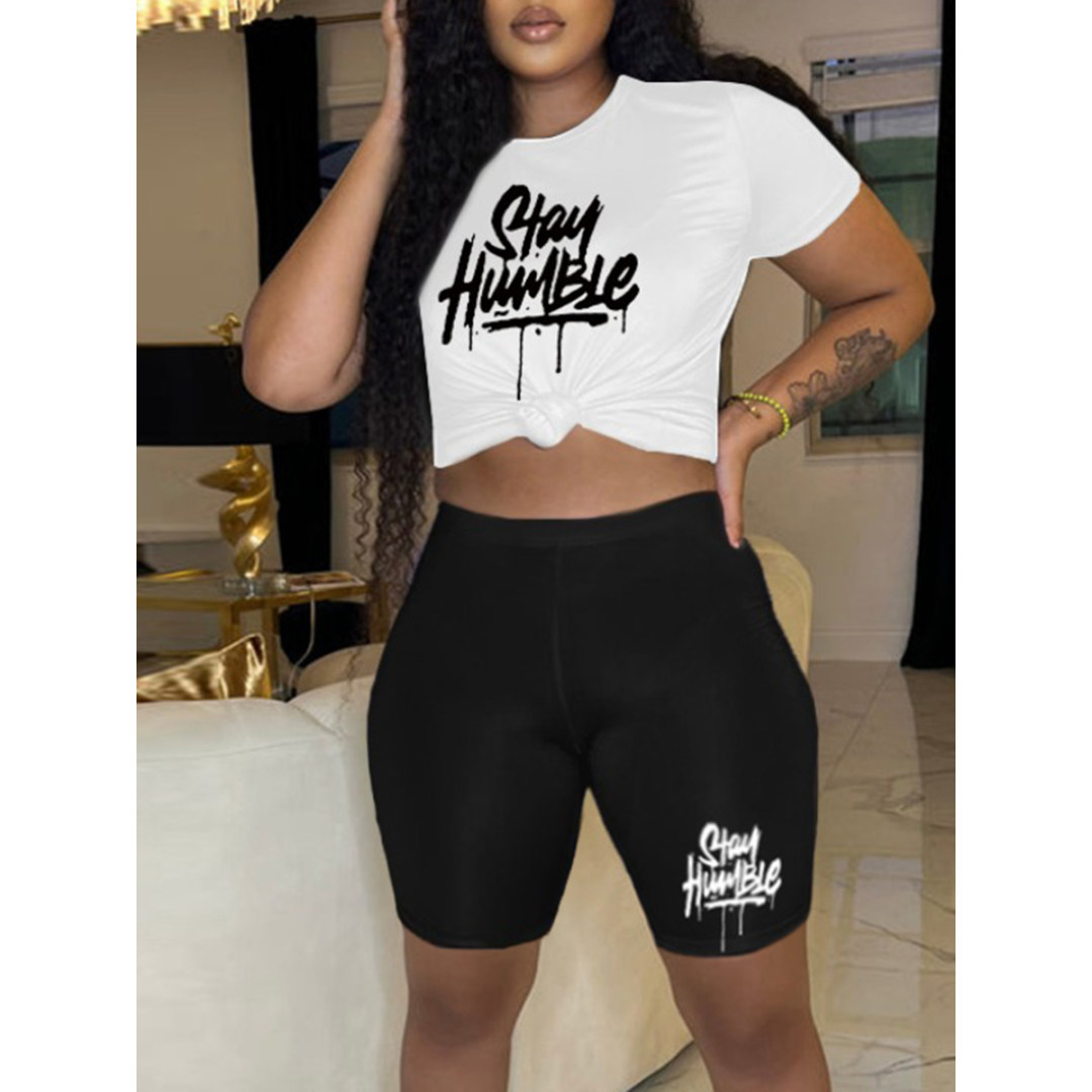 LW Stay Humble Letter Print Shorts Set
