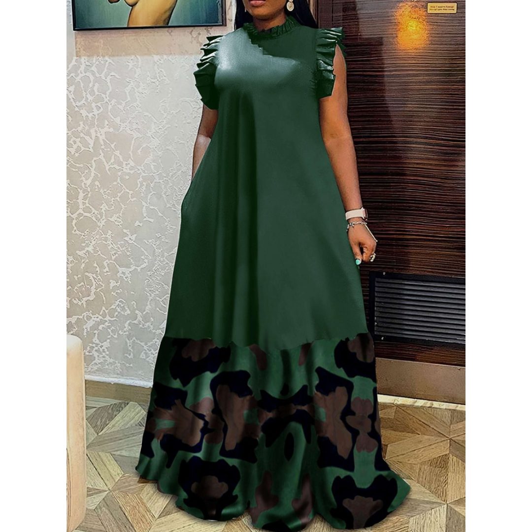 LW Plus Size Camo Print Ruffle Trim Loose Dress