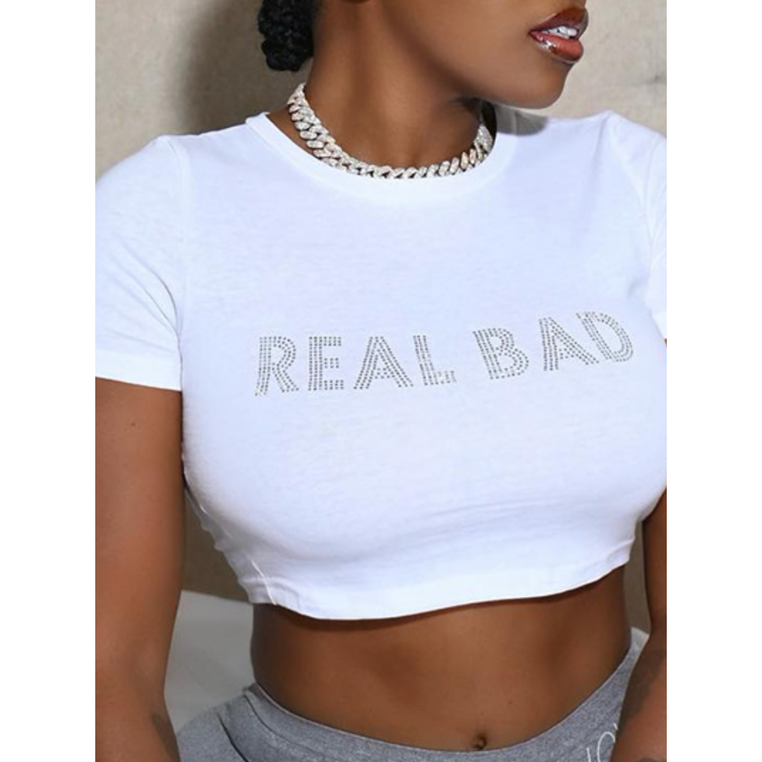 LW Crop Top Rhinestone Letter T-shirt