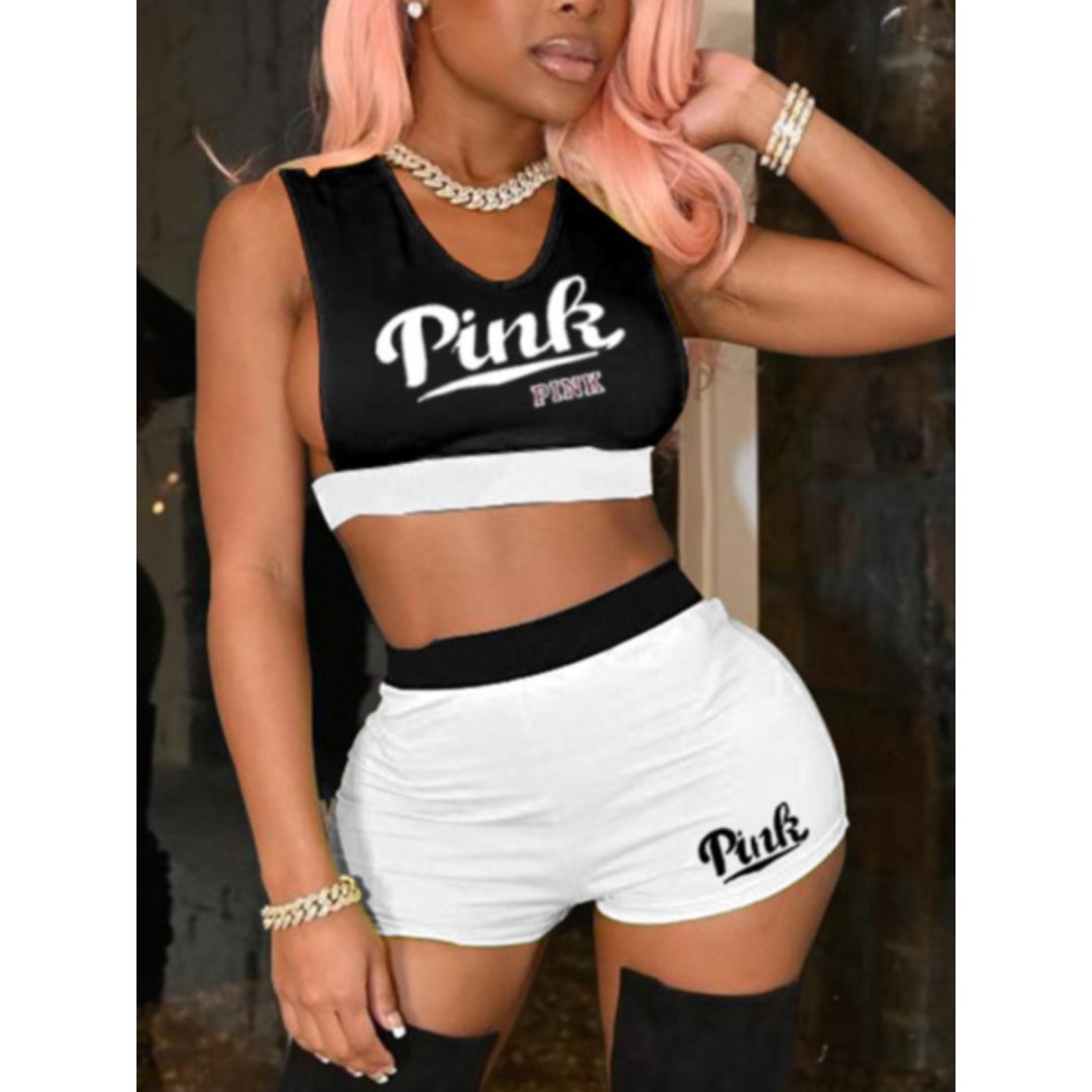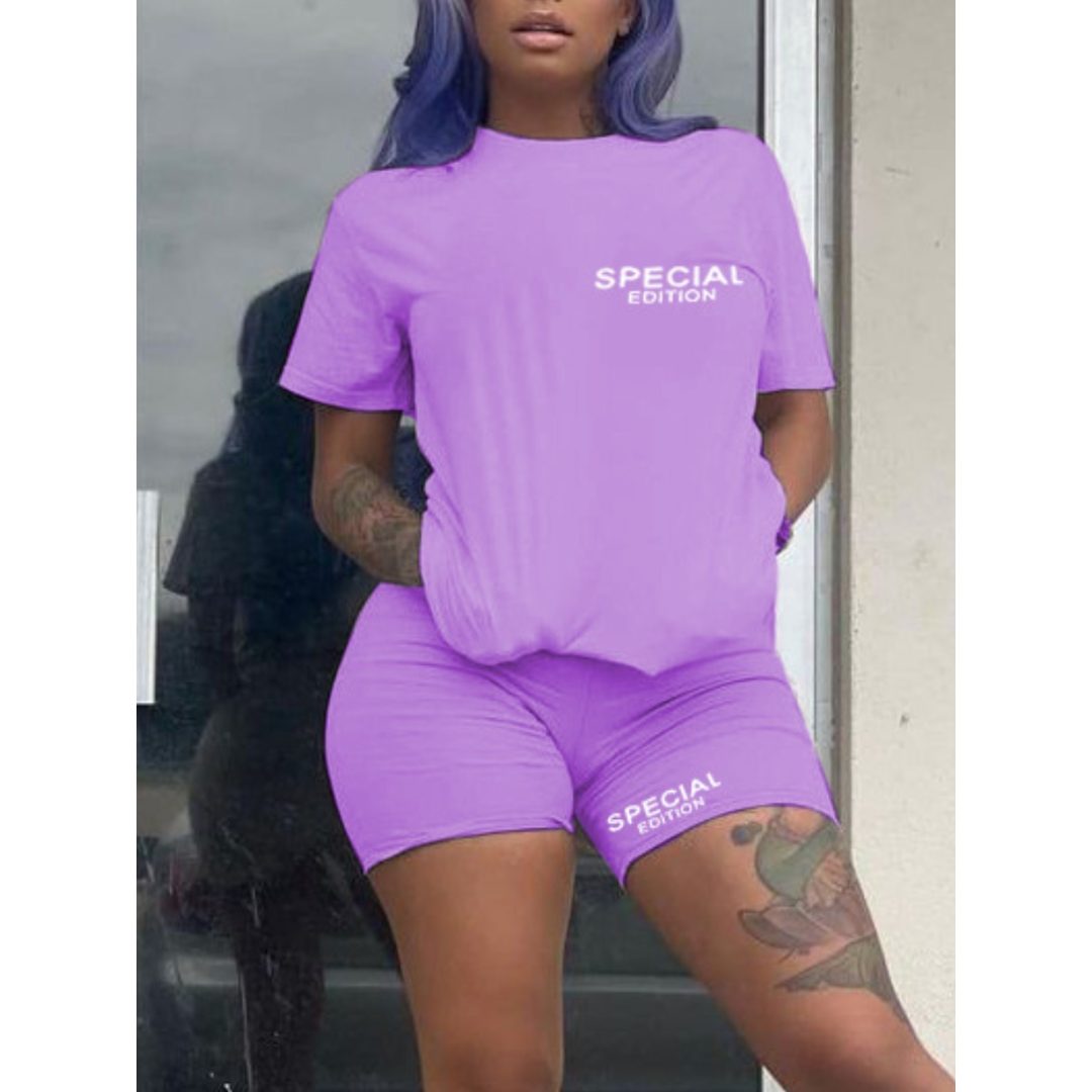 LW Plus Size Letter Print Regular Fit Shorts Set